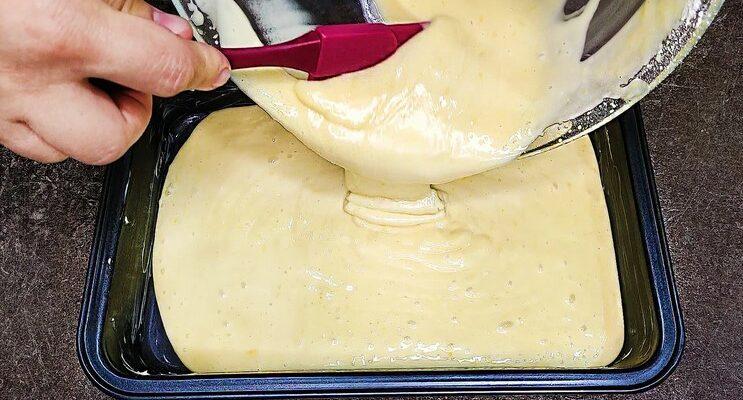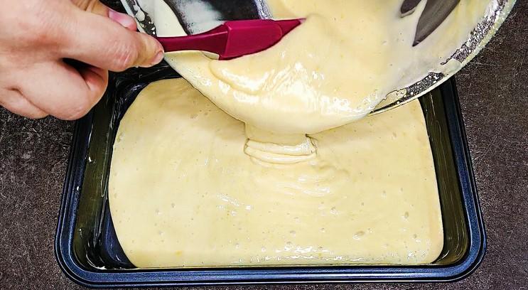 Форму діаметром 20 * 30 см змащуємо вершковим маслом і виливаємо підготовлене тісто.