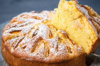 Готовність перевіряємо зубочисткою і даємо повністю охолонути. Перекладаємо пиріг на тарілку і прикрашаємо за своїм бажанням, я прикрасила цукровою пудрою. Готовий пиріг нарізаємо, перекладаємо на тарілку і подаємо до чаю.