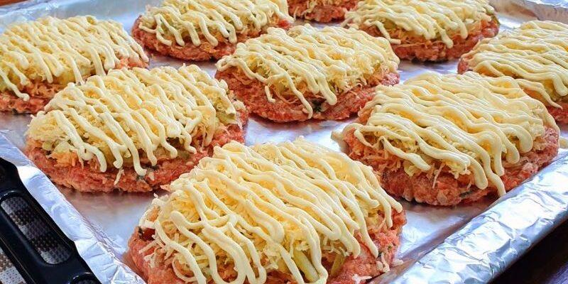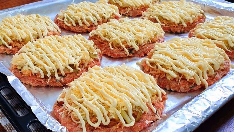 Формуємо круглі котлетки, викладаємо у форму та робимо з них м’ясні коржики.