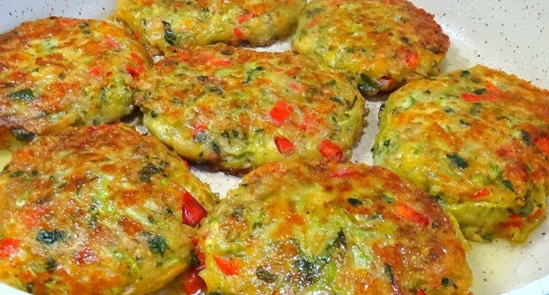 Кабачкові котлети з солодким перцем, сиром та вівсяними пластівцями. Виходить дуже апетитно та ситно.