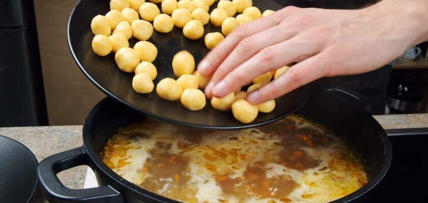 Звичайний суп на курячому бульйоні перетворився на справжній делікатес завдяки одній кулінарній хитрості. Я зробила ситне тісто, з якого накатала кульок.
