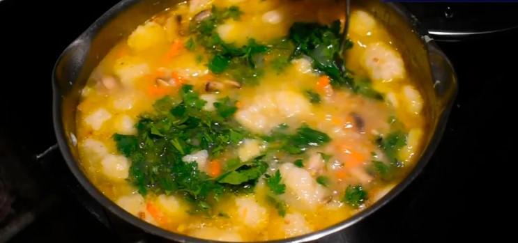 Рецепт гречаного супу з картопляними галушками. У цей суп я ще додала м’ясо і гриби, але Ви можете приготувати без цих двох інгредієнтів або вибрати щось одне.
