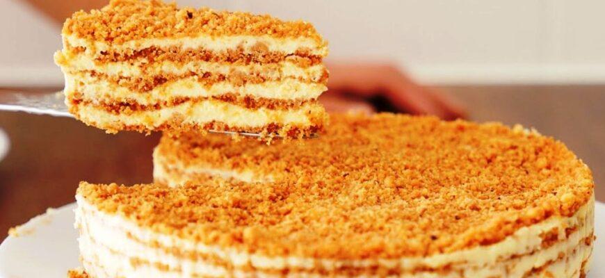 Торт виходить настільки ніжним і смачним, що неможливо повірити, що його коржі просто смажилися на сковороді. Повітряний заварний крем на сметані робить