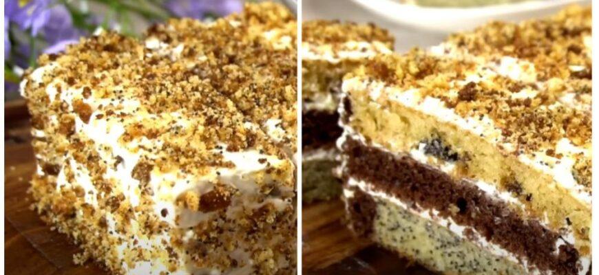 Вологий, просочений, ніжний торт із дуже багатим смаком. Такий маковий торт з повітряним, сметанним кремом готується швидко, зате результат завжди подобається всім гостям.