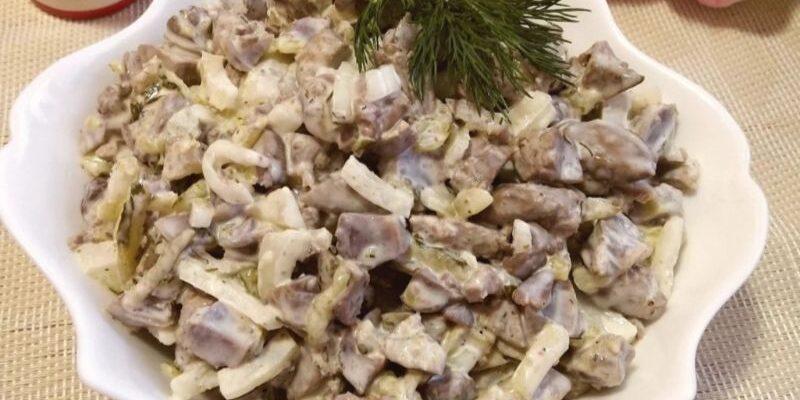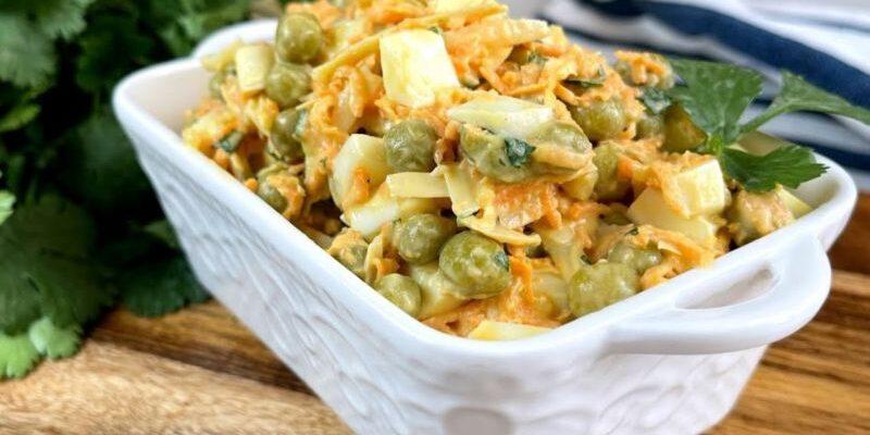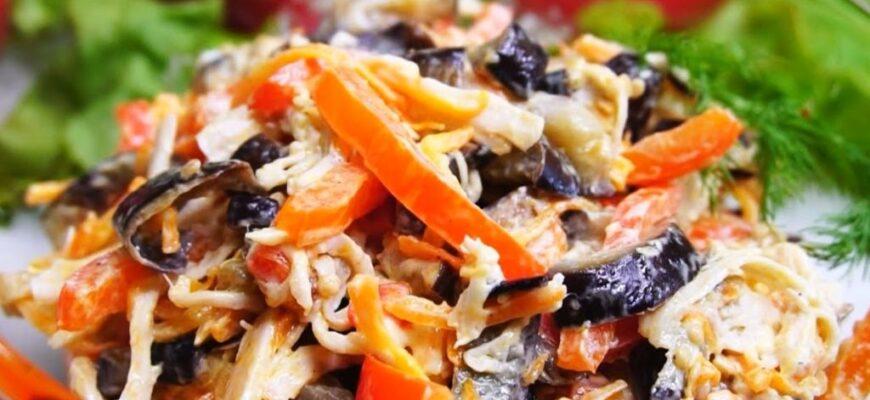 Досить оригінальний салат, який виходить цікавим, свіжим, якраз для літнього періоду. Він чудово поєднується з м’ясними та рибними закусками, різними нарізками.
