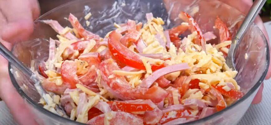Рецепт салату дуже простий, але він чудово підходить не лише для обіду та вечері, а й для святкового столу. Основа салату – шинка або ковбаса, копчене м’