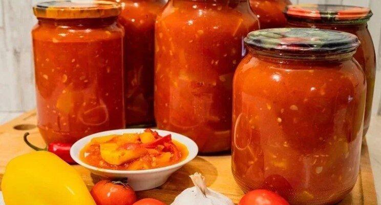 Старий, класичний салат із солодкого перцю, маринований у томатному соусі. У рецепті є все, що необхідно, тому раджу вам спочатку спробувати оригінал